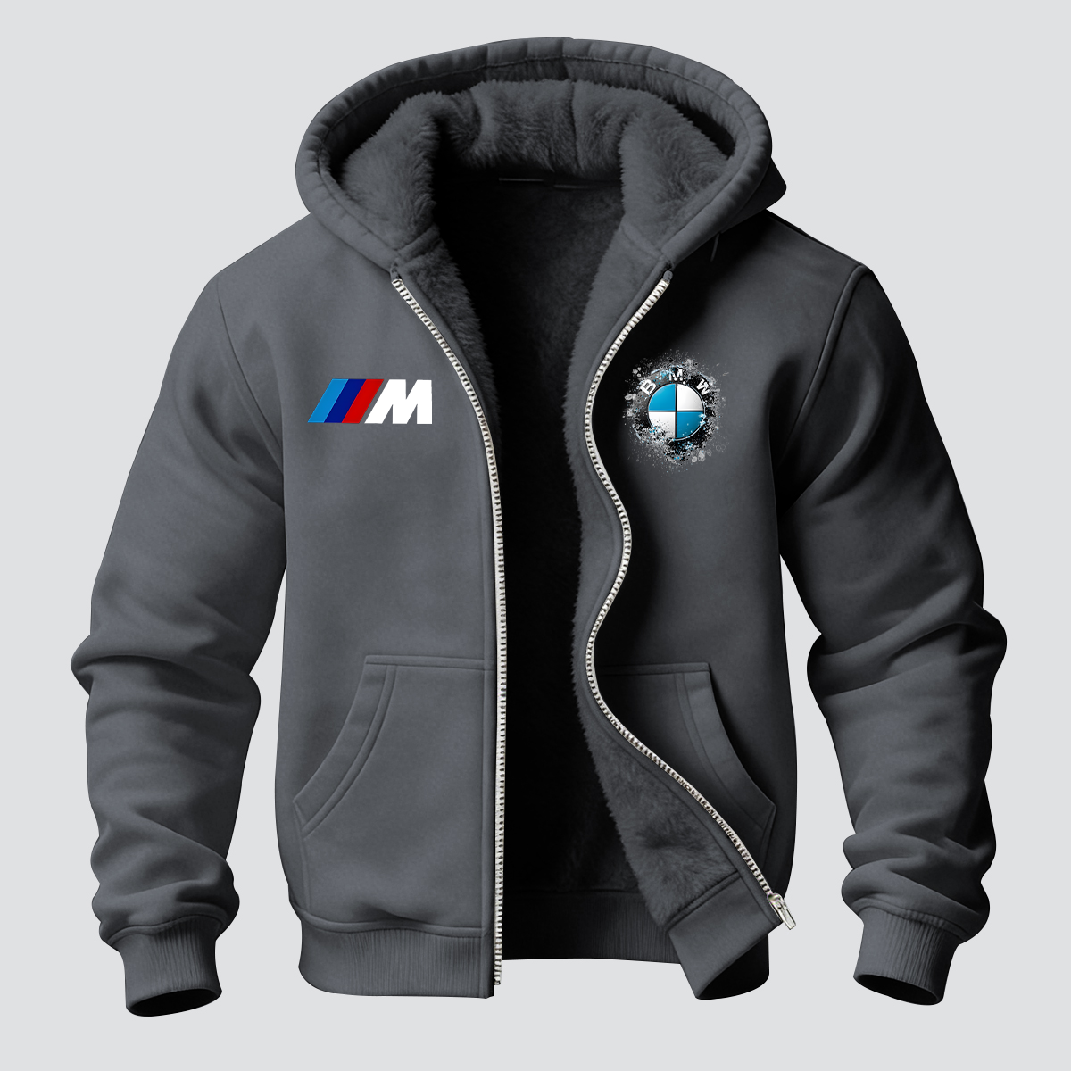 BMW Printed Zippered Hooded Fleece Cardigan
