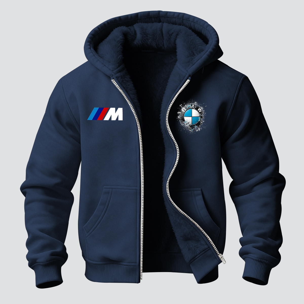 BMW Printed Zippered Hooded Fleece Cardigan