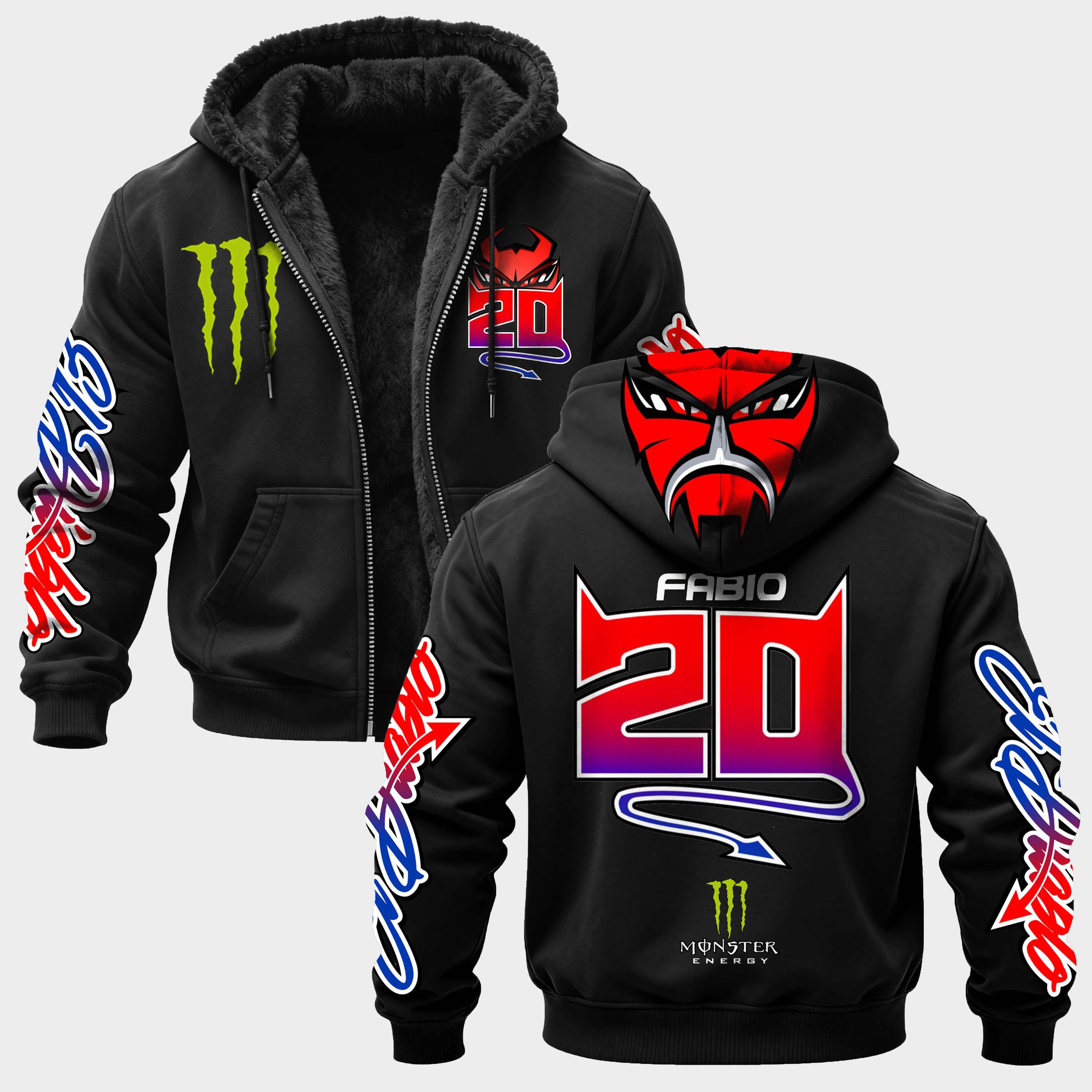 Monster Energy Fabio Quartararo Printed Zippered Hooded Fleece Cardigan