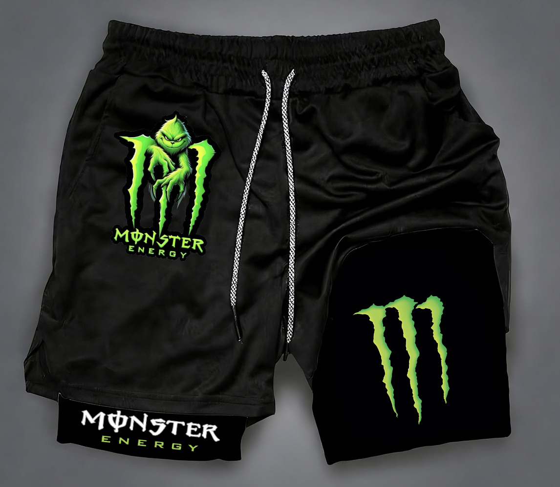 Monster Energy Grinch Print Men's All-In-One Fitness Shorts
