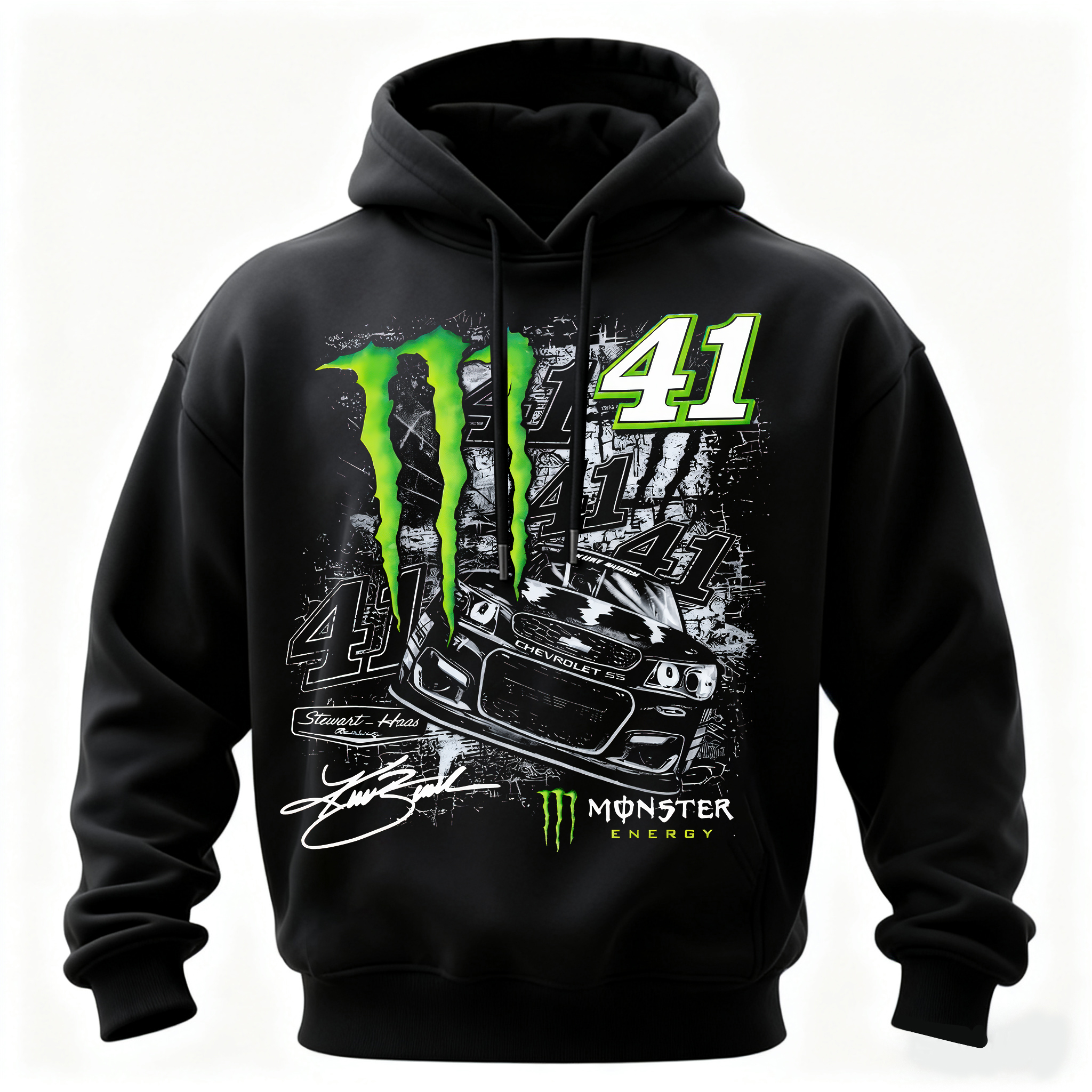 Monster Energy Kurt Busch #41 NASCAR Printed Fleece-lined Unisex Pocketless Hoodie