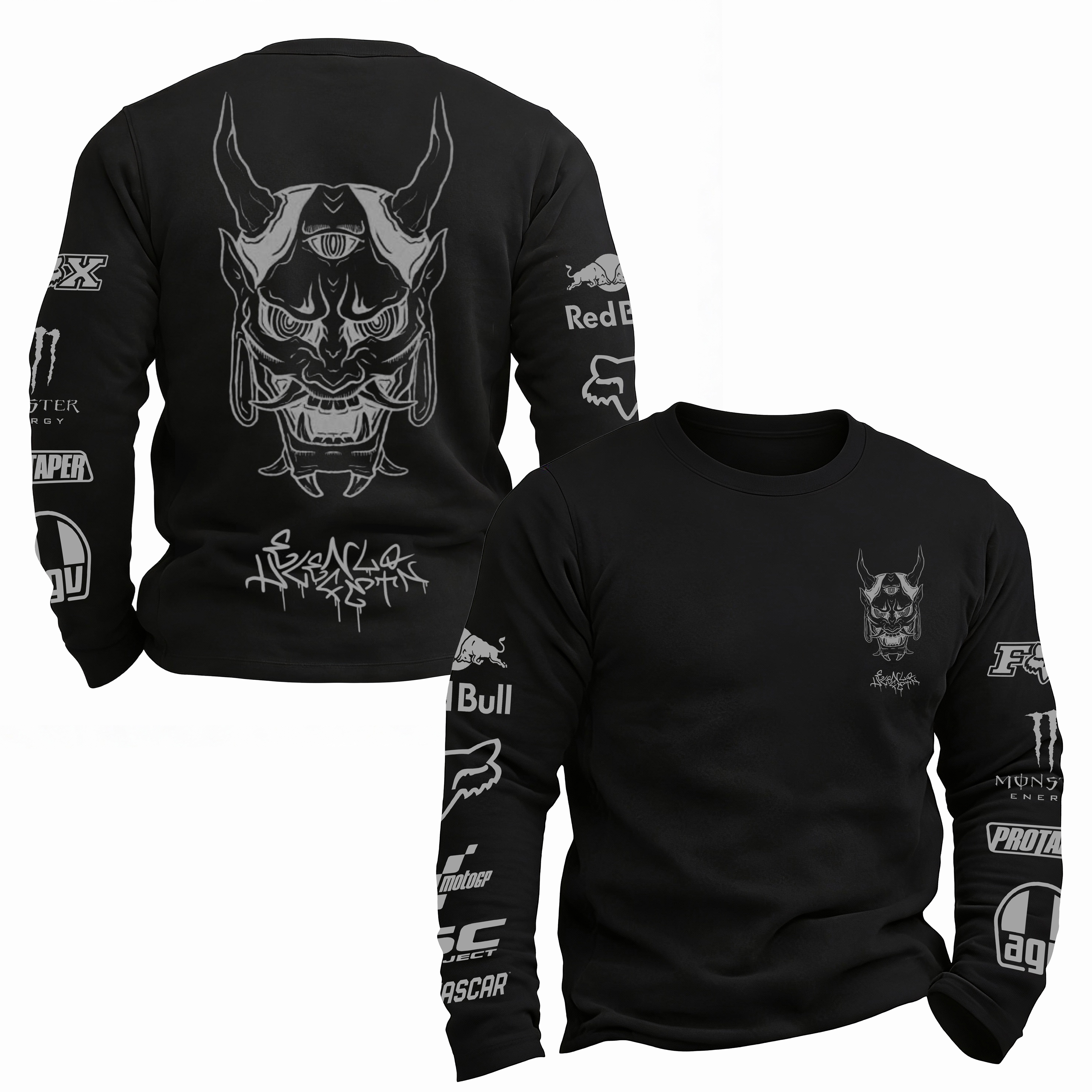 Red Bull Fox Racing Monster Energy Hannya Mask Printed Long Sleeve Men's T-shirt