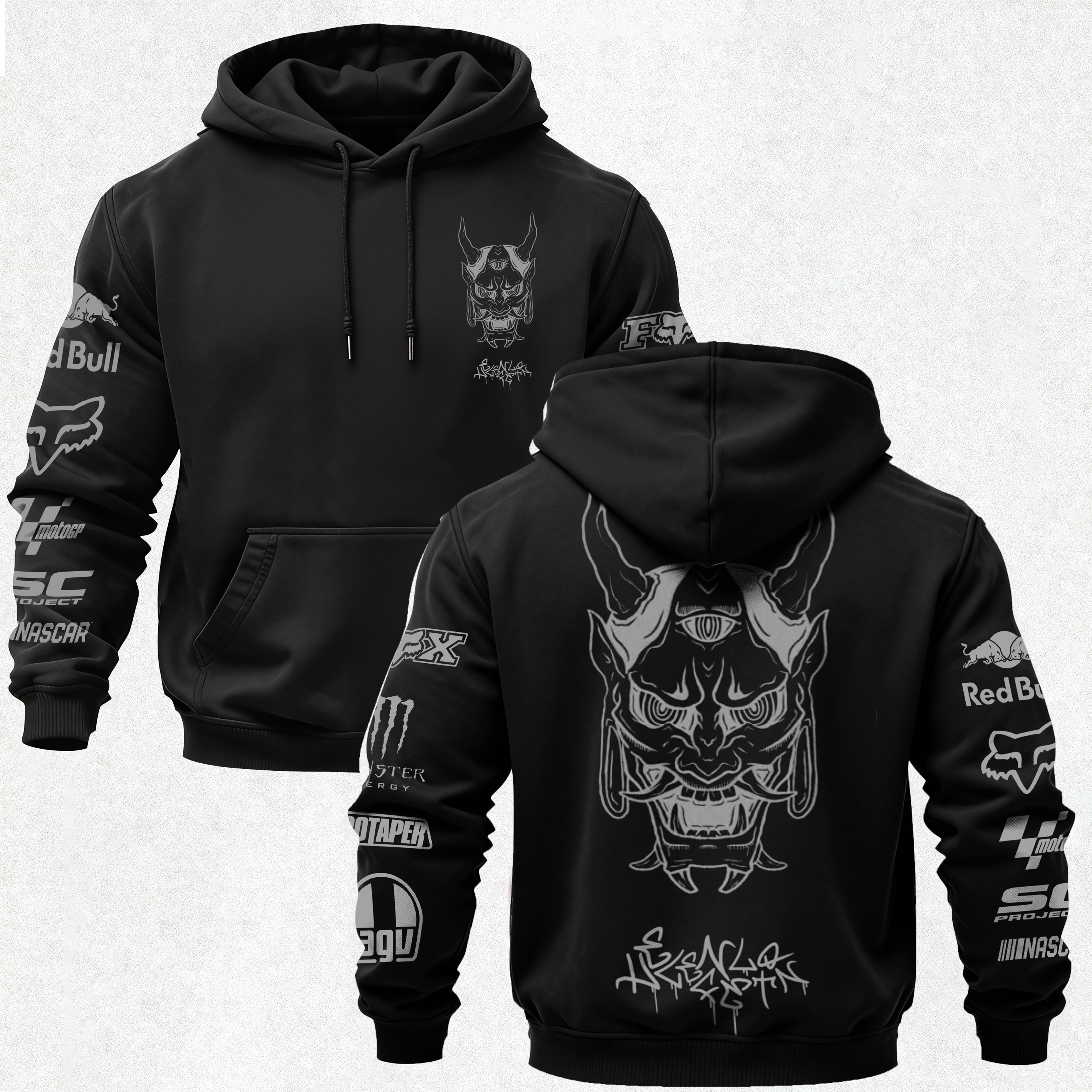 Red Bull Fox Racing Monster Energy Hannya Printed Fleece-lined Unisex Hoodie