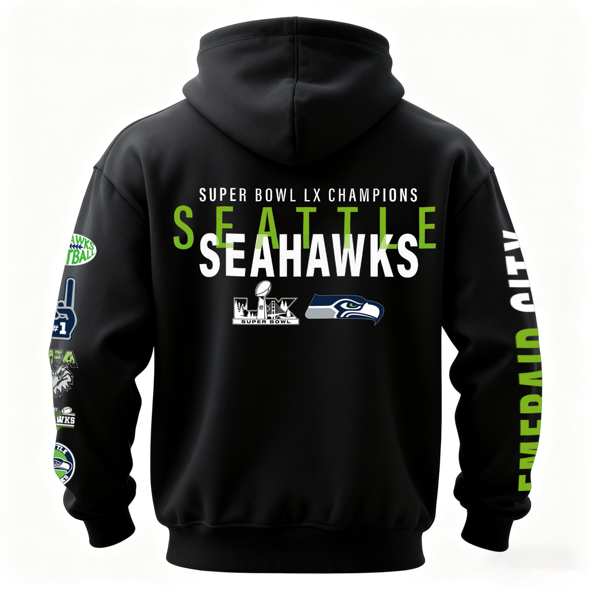 Seattle Seahawks Super Bowl LX Printed Fleece-lined Unisex Hoodie