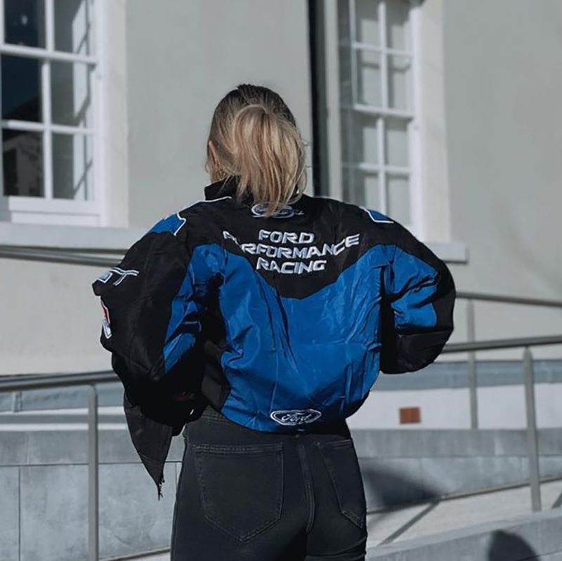 Street ford blue and black patchwork biker jacket