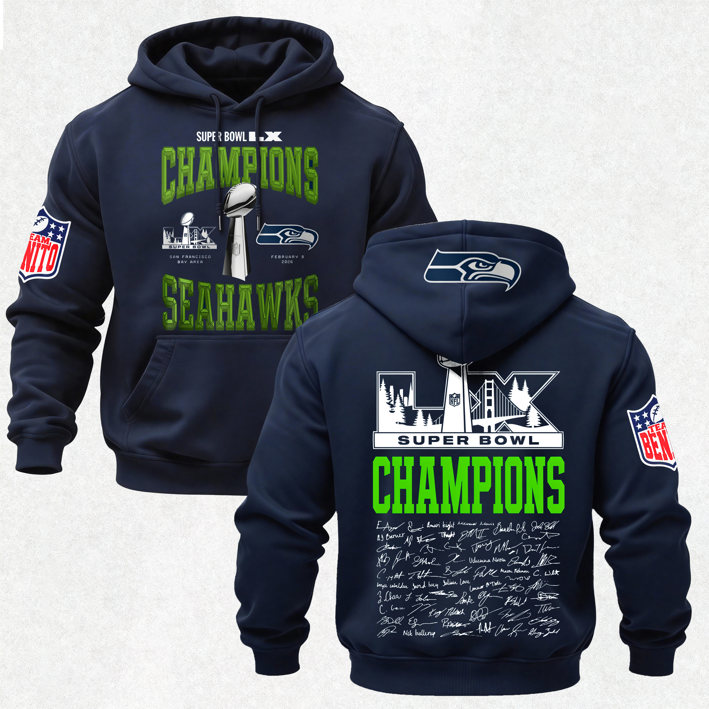 Super Bowl LX Champions Seattle Seahawks Printed Fleece-lined Unisex Hoodie