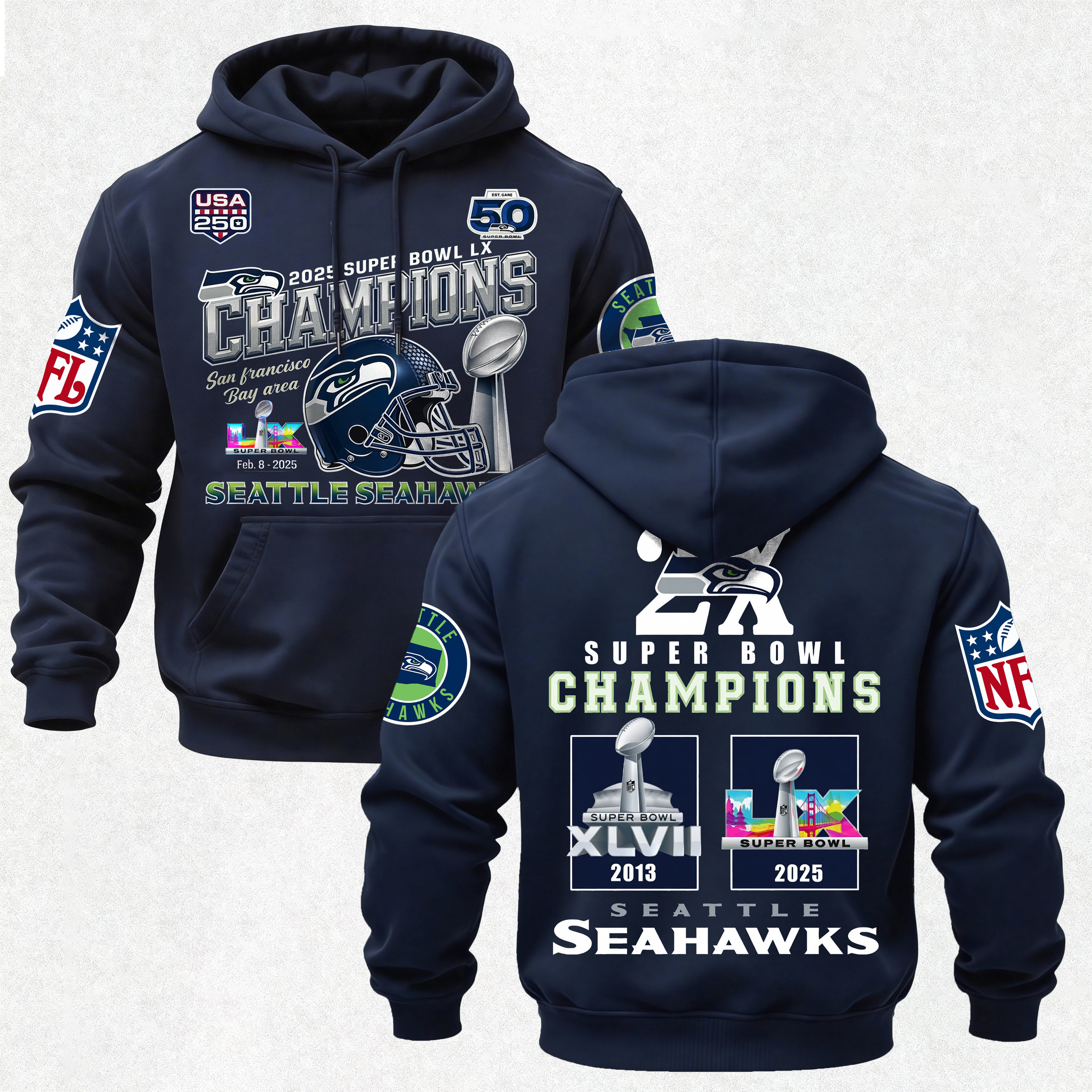 Super Bowl LX Seattle Seahawks Printed Fleece-lined Unisex Hoodie