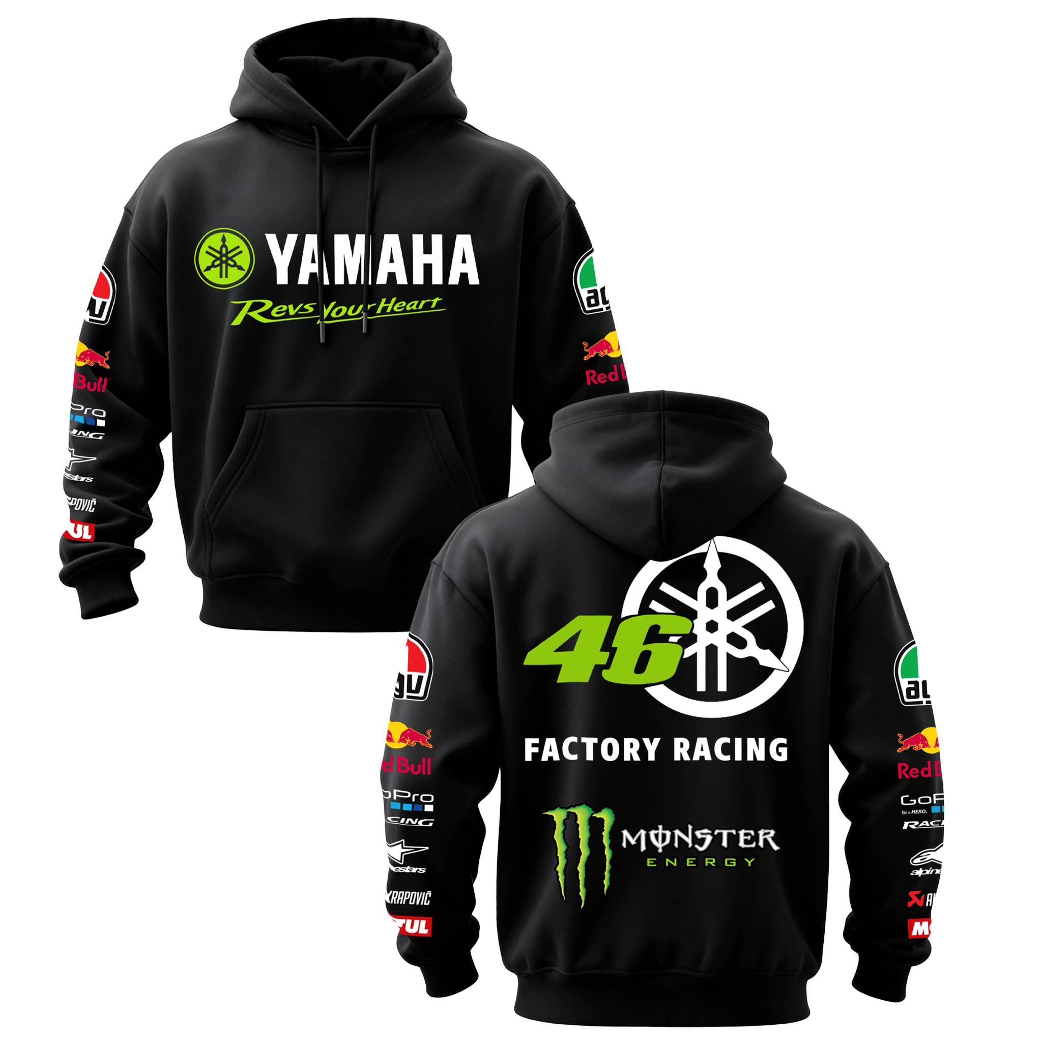 Yamaha Factory Racing Monster Energy Printed Fleece-lined Unisex Hoodie